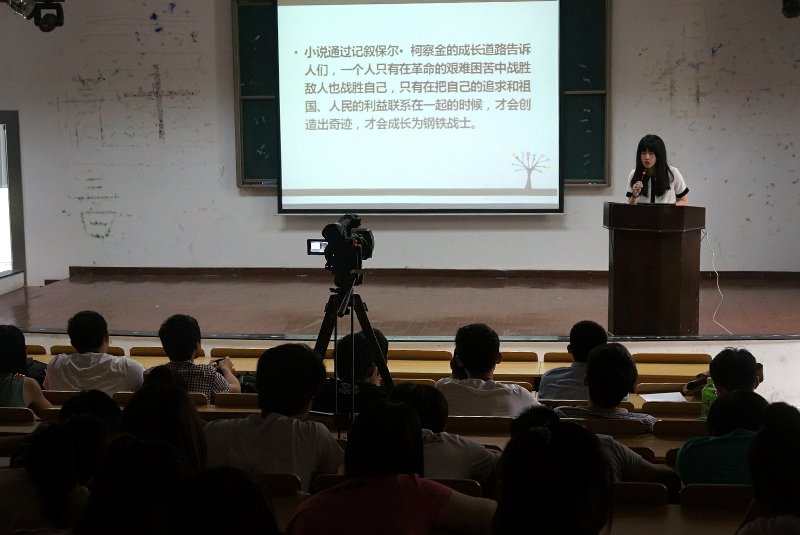 6月13日下午,思政部在学院第一阶梯教室举办了全校性的读书月交流活动,近400名师生来到活动现场。15位读书小组代表参加了当天活动的展示,他们是从126个读书小组中推选出来的,经过任课教师的多次指导修改,展示以PPT为交流素材,将小组读书心得贯穿其中,用多种形式表现出来,充分带动了现场的氛围。有的以歌曲为明线,带领我们领略书中的精髓;有的以小组心得为划分点,像我们展示了书籍中的浩瀚世界。一些PPT选材偏向文史类,让我们在陶冶情操的同时,也聆听了历史那无言又深奥的情怀;一些PPT则侧重于说理,将坚守小我与塑造大我相结合,为我们进行了一场精神上的洗礼与升华。