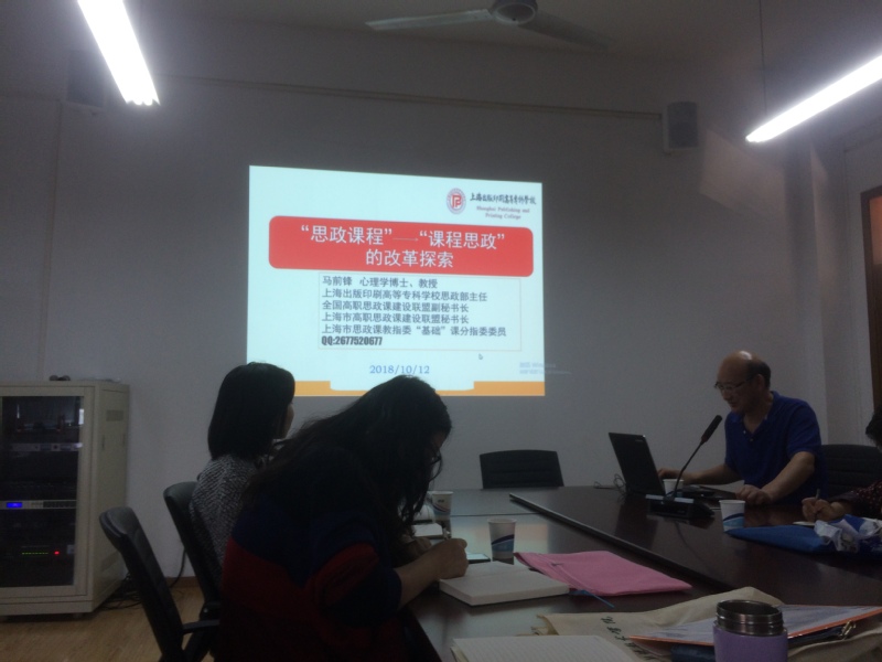 10月12日下午1点,我院思政部、基础部特邀全国高职思政课建设联盟副秘书长、上海市高职思政课建设联盟秘书长、上海市思政课教指委“基础”课分指委委员、上海出版印刷高等专科学校思政部主任马前锋教授做《思政课程与课程思政的改革探索》交流研讨。丁晓红主任主持了本次教学研讨,思政部、基础部全体教师参与学习。