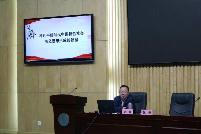 刘勇教授以新时代中国特色社会主义思想形成的依据为授课主题,向同学们介绍了其形成的重大政治论断:只有与历史同步伐,与时代同命运、才能赢得光明的内涵。接着,他为同学们阐述了新时代的丰富内涵和重大意义:新时代是中国特色社会主义新时代,而不是别的什么新时代。中华民族正在从富起来到强起来的伟大飞跃,中华民族将以更加昂扬的姿态以利于世界民族之林。最后,刘教授理论联系实际,用十分接地气的生活案例告诉同学们,新时代要有新气象新作为,新时代是奋斗者的时代,幸福是奋斗出来的。