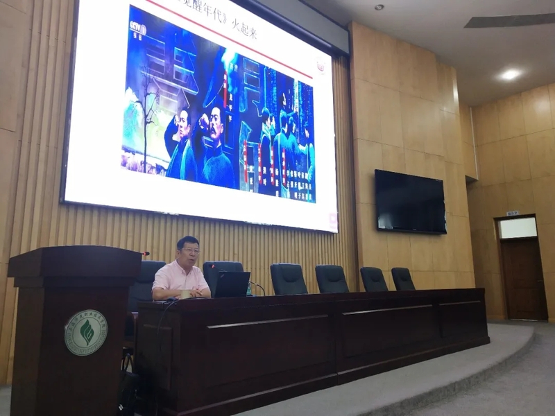 李教授以《觉醒年代》的写作、编剧、场景展现及其表达意图为线索,为全体2021级新生上了一堂生动的开学第一课。李教授在讲授中指出,电视剧《觉醒年代》反映了中国1915年至1921年发生的新文化运动、五四运动、中国共产党成立三件大事,展现前后发生的这三件大事的主线和它们之间历史演进的逻辑关系,揭示一个历史大道:历史选择了共产党,人民选择了共产党。