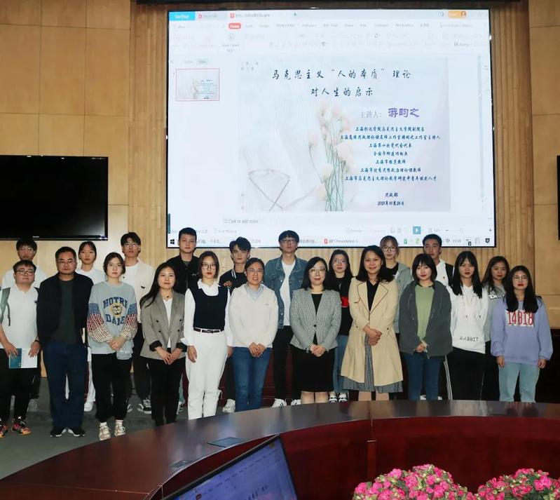 人的本质是什么?在10月26日第五期的“青年马克思主义学习班”第二次集中理论学习讲座中,思政部邀请了上海杉达学院马克思主义学院副院长(主持工作),上海高校思政理论课名师工作室游昀之工作室主持人,上海第十次党代会代表,全国巾帼建功标兵,上海市优秀思想政治理论课教师,上海市模范教师,上海市马克思主义理论教学研究中青年拔尖人才游昀之老师为青马学员就这一问题进行理论授课。游老师以《马克思主义“人的本质”理论对人生的启示》为主题深刻阐释了人的本质,启发学生深层次思考人生真谛。思政部教师、第五期“青马班”成员和指导老师参与聆听,其中杨浦校区的青马学员通过雨课堂平台同步观看本次课程直播。