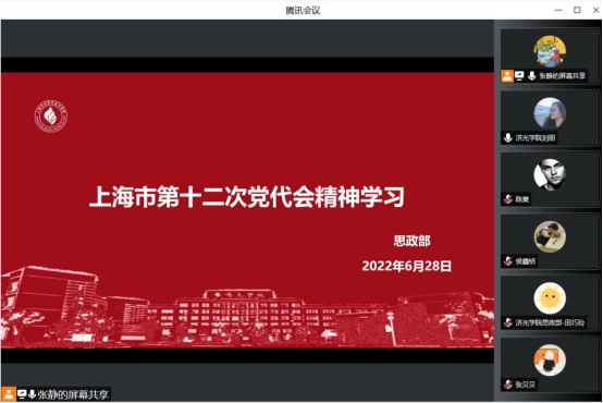 6月28日15:00,思政部通过腾讯会议围绕中国共产党上海市第十二次代表大会精神进行了认真学习交流。学院党委副书记、思政部主任(兼)刘丽老师、基础部与思政部直属党支部书记孟凡涛老师以及全体思政部教师参加,会议由张静老师主持。