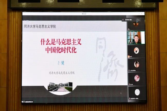 习近平总书记在中国共产党第二十次全国代表大会上的报告中指出“实践告诉我们,中国共产党为什么能,中国特色社会主义为什么好,归根到底是马克思主义行,是中国化时代化的马克思主义行。”11月1日晚,第六期青年马克思主义学习班暨团学骨干培训班第四次集中理论学习讲座在圆形会议室通过线上线下相结合的方式举行,思政部邀请同济大学马克思主义学院教授、博士生导师,毛泽东思想和中国特色社会主义理论体系概论教研室主任,党史学习教育上海市委专家宣讲团成员,上海市习近平新时代中国特色社会主义思想研究中心研究员,上海市马克思主义理论教学研究“中青年拔尖人才”,上海市马克思主义研究会理事吕健教授就这一主题进行理论授课。