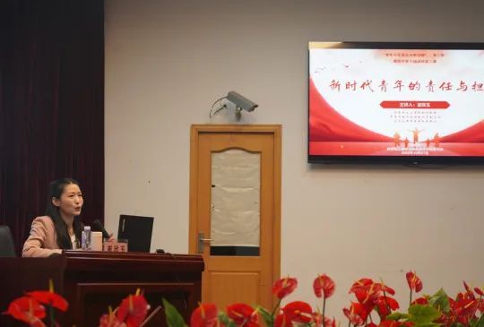 崔欣玉老师从青年担当的历史传承、青年担当的现实语境和青年担当的时代要求这三个方面为我们解读了新时代青年的责任与担当。首先,她用“家国情怀”“中国梦”“坚定的信仰”和“人民”这四个关键词来阐释了青年担当的历史传承。其次,她用习近平总书记在庆祝中国共产主义青年团成立100周年大会上的一句话“生逢其时,重任在肩”来展开讨论了青年担当的现实语境,她用这句话引出了“际遇”和“命运”两个话题,并指出我们的时代在不断发展,我们也应该承担起属于我们新时代青年的使命。最后,她提出了“立大志”“明大德”“成大才”“担大任”四个青年担当的时代要求,提出了青年应该从信仰、价值、能力和践行四个方面来要求和发展自己。