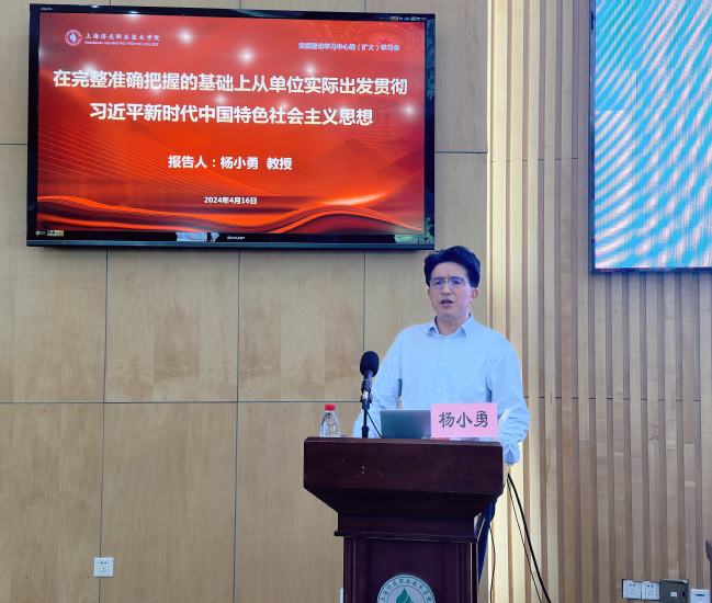 为深入学习贯彻习近平总书记关于党纪学习教育的重要讲话和重要指示精神,全面落实中央党的建设工作领导小组会议精神,引导党员干部学纪、知纪、明纪、守纪,始终做到忠诚干净担当,4月16日上午,学校在圆形会议室举行校党委理论学习中心组(扩大)学习会,邀请了同济大学马原教研室负责人、我校思政部副主任杨小勇教授作题为《在完整准确把握的基础上从单位实际出发贯彻习近平新时代中国特色社会主义思想》的专题辅导报告。校领导及助理、校党委理论学习中心组成员、全体中层干部、全体辅导员、思政教师等参加。会议由党委副书记刘丽主持。