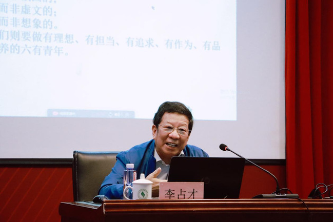 讲座伊始,李占才教授首先明确提出我们都是“新青年”,回看百年前,陈独秀先生提出的“新青年”的六大标准。李占才教授结合当前具体实际依次分析了新时代大学生如何对标这六大标准,把自己的长处发挥出来,实现人生价值,成为有理想、有担当、有追求、有作为、有品质、有修养的新青年。