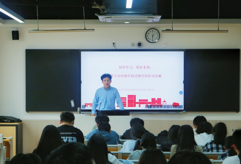 5月27日下午,我校思政部在宝山校区412教室开展“服务中国”系列讲座活动,由思政部副主任杨小勇教授讲授,主题为《刻苦学习,练好本领,努力为中国式现代化作出贡献》,建筑工程学院和经济管理学院部分班级学生参加。作为我校“服务中国”系列讲座的一部分,本次主题讲座旨在激励学生们积极学习,提升综合能力,为实现中国式现代化贡献力量。
