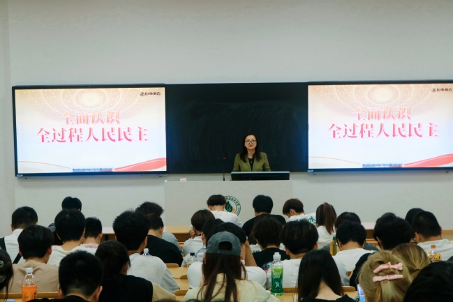 为贯彻落实中共中央国务院印发的《关于深化新时代学校思想政治理论课改革创新的若干意见》和教育部《关于加强新时代高校“形势与政策”课建设的若干意见》等文件精神,贯彻习近平总书记对学校思政课建设重要指示精神,守正创新推动思政课建设内涵式发展,充分发挥校领导在学生思想政治教育工作的示范带头作用,我校建立了校领导进课堂的思想政治教育工作机制。6月5日,校党委副书记刘丽为我校学生讲授了一堂生动而深刻的“全面认识全过程人民民主”的形势与政策课,此次授课旨在帮助学生全面、深入地理解全过程人民民主的内涵与实践,进一步增强学生的政治意识和社会责任感。