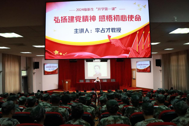 9月9日上午,我校在宝山校区报告厅主会场开展新生“开学第一课”入学教育,同济大学马克思主义学院教授、博导,全国高校思想政治理论课教师年度影响力人物、思政课名师、我校特聘教授及“李占才名师工作室”主持人李占才教授以《弘扬建党精神 感悟初心使命》为题为新生讲授入学第一课,两校区分会场师生在各学院教室通过雨课堂同步观看直播学习。