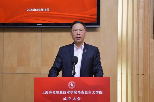我校马克思主义学院成立大会于10月18日14:00在宝山校区学生活动中心圆形会议室举行。同济大学党委书记方守恩、上海市教卫工作党委一级巡视员郑锦、上海市民办高校党工委副书记江鸿波等领导出席大会。上海市教卫工作党委宣传处、中共宝山区委宣传部、上海市宝山区教育局、同济大学马克思主义学院、上海淞沪抗战纪念馆、上海市宝山区杨行镇的领导和思政专家出席了大会。同济大学原党委书记、我校现任董事长周家伦出席大会,为马克思主义学院揭牌。成立大会由校党委书记姜富明主持。