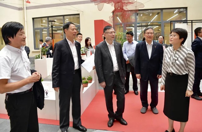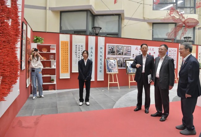 与会的领导和嘉宾共同参观了学校校史馆,观看了“我心中的马克思”师生文创作品展,对我校创新构建“思政+美育+实践”浸润式思政育人新模式给予了高度评价。