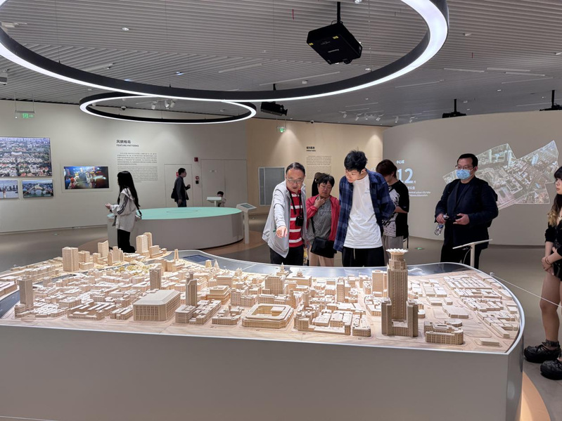在“人文之城”展区,通过模型呈现的城市肌理、风貌格局、城市更新等众多展项,让师生们领略到上海丰富多元的空间特质和“以人为本”的城市发展理念。而在“创新之城”展区,采用数字交互技术模拟的上海城市景象,又让大家对这座城市的发展充满了无限憧憬与遐想。同学们纷纷驻足观看,不时拿出手机拍照记录,与身边的老师和同学交流探讨,现场气氛十分活跃。