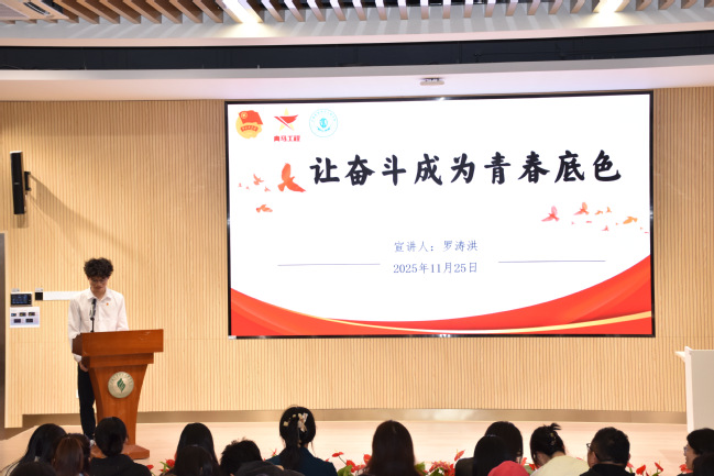 本次学习成果展示由马克思主义学院与团委共同审核,根据各二级学院青马小组开展的活动成效、学院特色活动、汇报PPT形式与内容等综合考评,最终选出本次学习成果展示有经济管理学院、人工智能学院、护理学院、计算机技术与工程学院,学生代表依次上台,汇报了各自学院在完成统一学习要求的基础上,结合专业特点开展的形式多样、内容丰富的理论学习与实践活动,充分展现了各小组的学习成效与创新活力。接着作为青马学员宣讲代表,来自计算机技术与工程学院的25级软件技术1班的罗涛洪以“让奋斗成为青春底色”为主题进行了宣讲展示,汇报及宣讲结束后,本次结业典礼特邀嘉宾同济大学马克思主义学院青年教师任博对本期培训班的成果给予了高度评价,并结合自身研究与教学经验,对学员们的持续成长提出了殷切期望和宝贵建议。最后,举行了隆重的结业证书颁发仪式以及合影留念。