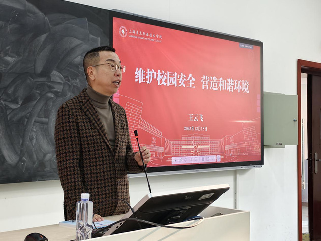 为贯彻落实教育部《关于加强新时代高校“形势与政策”课建设的若干意见》文件精神,坚持不懈用习近平新时代中国特色社会主义思想铸魂育人,2025年12月18日,副校长王云飞走进我校《形势与政策》课堂,以“维护校园安全 营造和谐环境”为主题,为同学们带来了一堂内容扎实、贴近生活的专题授课。